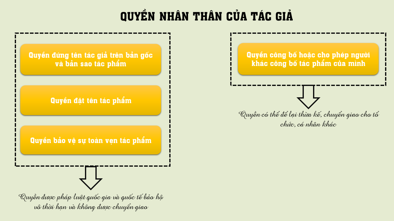 Tác giả có quyền nhân thân và quyền tài sản đối với tác phẩm do mình sáng tạo ra.